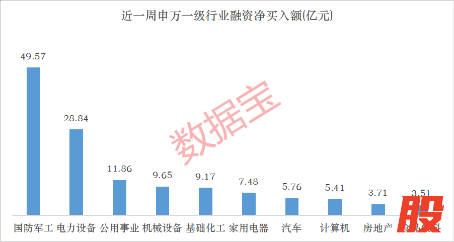 分行业来看,国防军工、电力设备、公用事业排名前三,融资净买入额依次为49.57亿元、28.84亿元和11.86亿元;机械设备、基础化工净买入额也均超过9亿元。通信、非银金融、医药生物、电子则遭到融资净偿还额均超10亿元,依次为35.75亿元、20.8亿元、14.11亿元、10.08亿元。